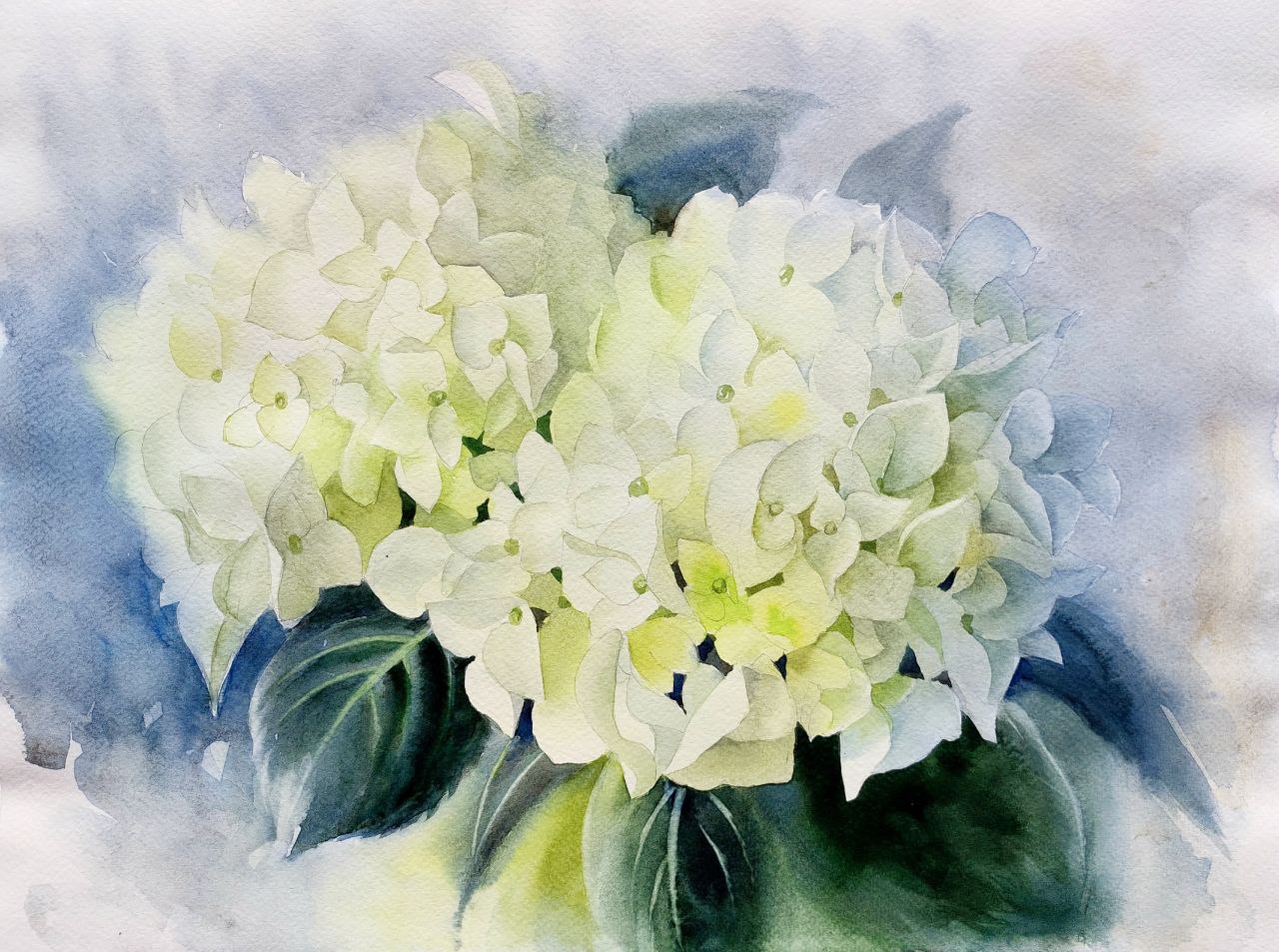 "Гортензія", 2024Папір, акварель, 30 х 39 см
